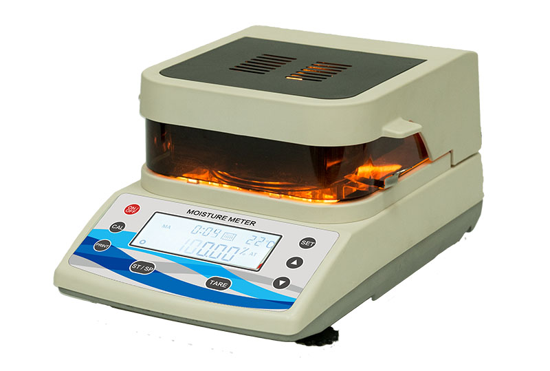A moisture analyzer is a device that determines the moisture content with the loss on drying method and consists of a weighing and halogen heating unit. It suits the needs of quality control and production in food, pharma, chemical and other industries. Readability [d]: 0.0001 g Maximum capacity [Max]:50 g